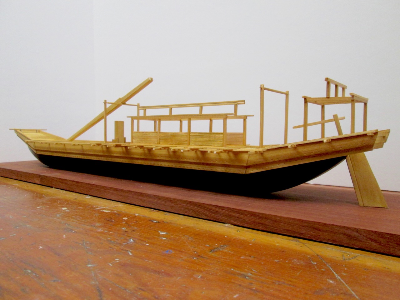 The Kanagawa University model shows straw mat sail as being made up of separate panels that seem to be tied together at the edges. Photo by Masami Sekiguchi.
