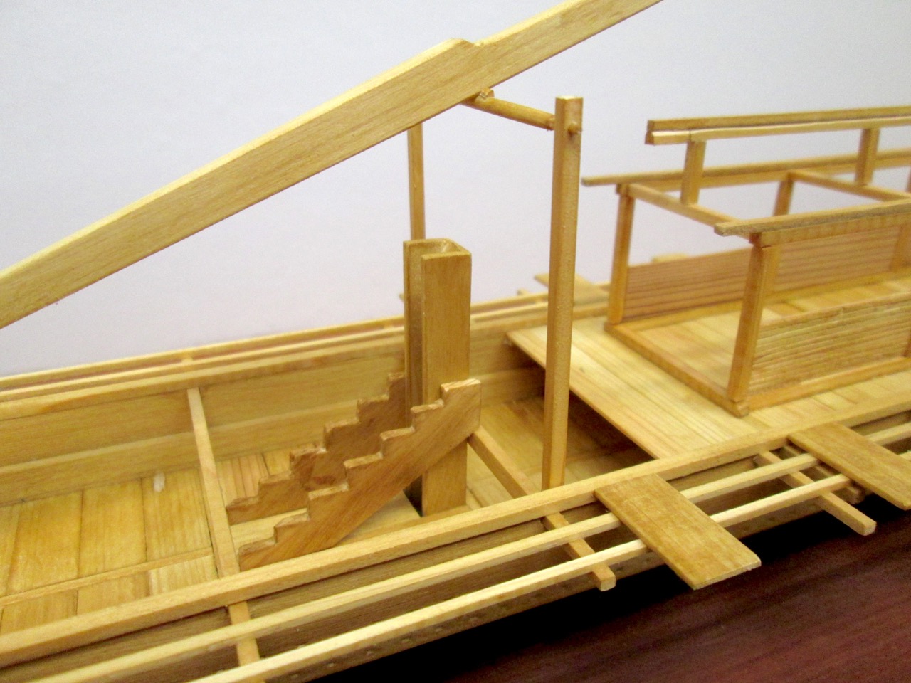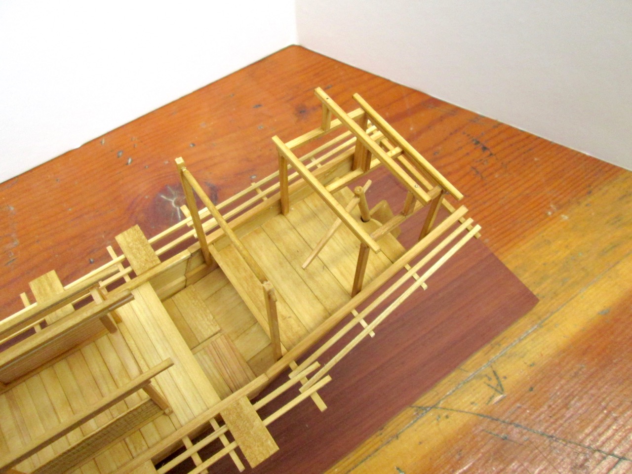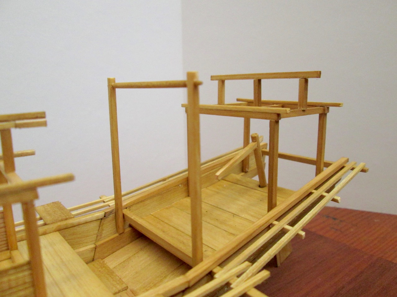 Now, I should point out that I’m pretty much “winging it” when it comes to the structures. I’ve examined images of traditional Japanese carpentry and structure, and looked over my photos of houses from the Edo-period, though that’s 300 to 500 years later than this boat. I think this is basically what I’m seeing in the museum models, and I think it, more or less, works.