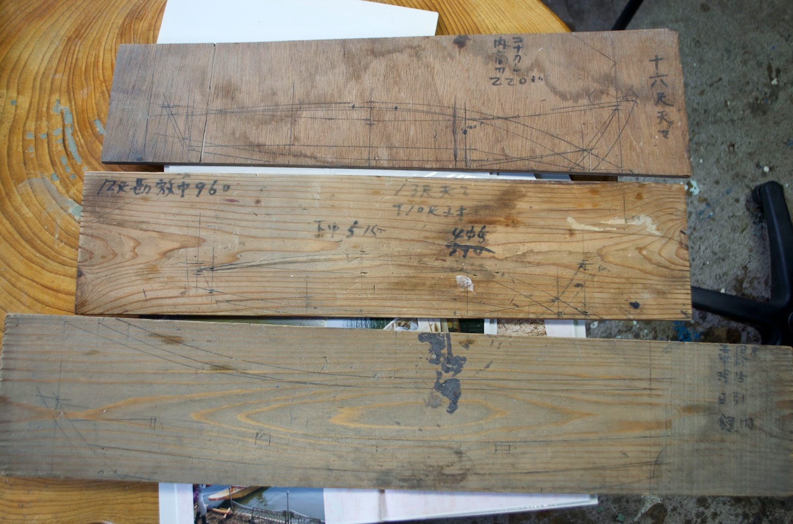 One reason for this is that Japanese boatbuilders don’t have a tradition of recording their work, and they generally only make temporary drawings on wood, sometimes destroying them when done.