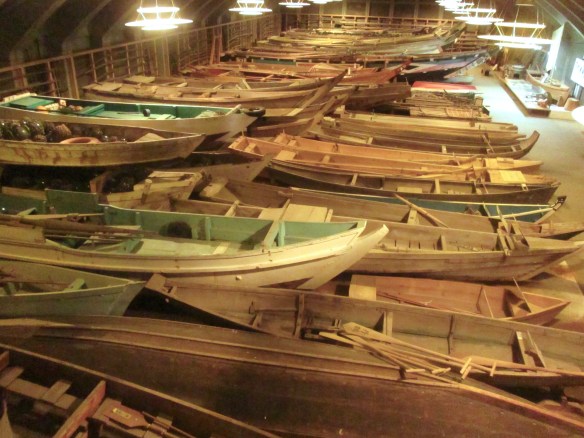 Japanese boats, certainly the smaller ones, are built with generally only four stations of known measure. Thick planks are bent to match these few points. Because planking on Japanese watercraft is thick, it’s harder to bend, which is one reason why most of the simpler looking Japanese boats tend to have the same nice, natural curved shape. The planks are also wide, and Japanese boats commonly have a chine hull with something of a 5-sided hull shape: A bottom, and what might be termed garboard planks and sheer planks.