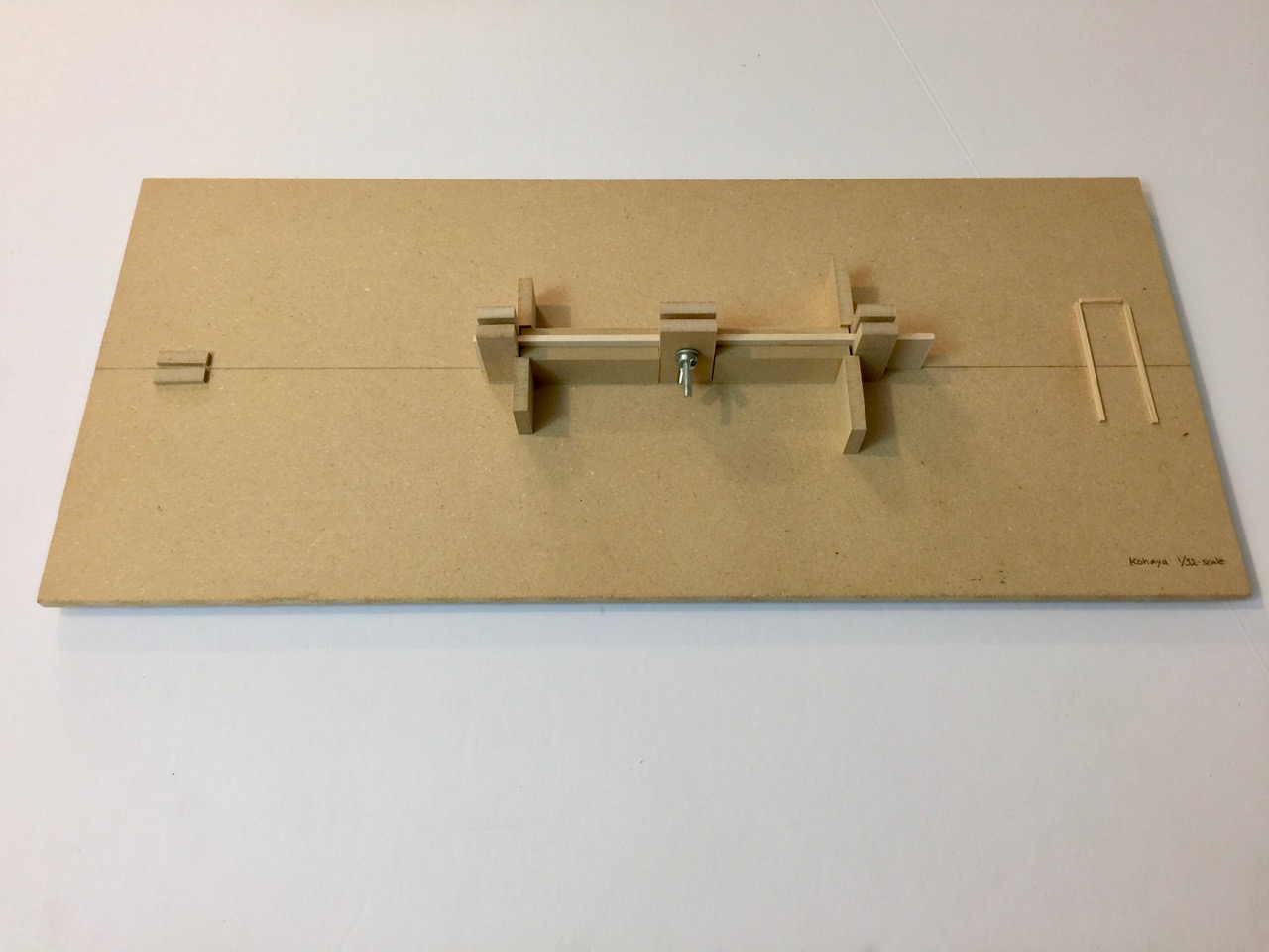 The shiki, or bottom, was the first thing I cut. I use a single sheet of 1/8″ basswood for this. I have been building from Japanese woods up to this point. But, since this is a very western scale of 1/32 (3/8″ = 1′), basswood seemed appropriate.