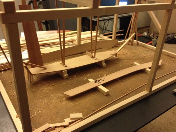After struggling with really understanding all the fine details, and how to build a model of a boat that has no internal framing, I cheated a bit and built a model of a Japanese traditional boatbuilder’s workshop instead.