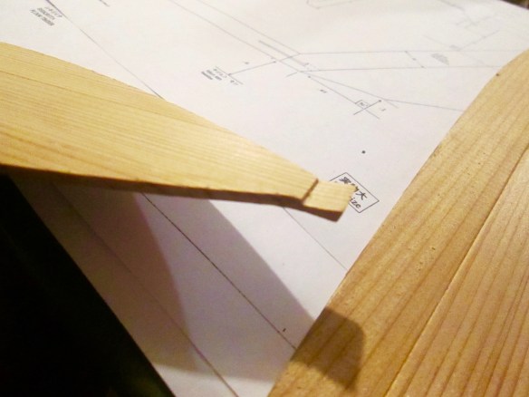 I did cut mortises into the transom piece, also called the todate (tow-dah-teh), but when visiting the museum in Urayasu, the boatbuilder there told me I should have 5 mortises, not 3. It’s clear that different boatbuilders have their own “correct way” of building the boat. I stuck with 3.