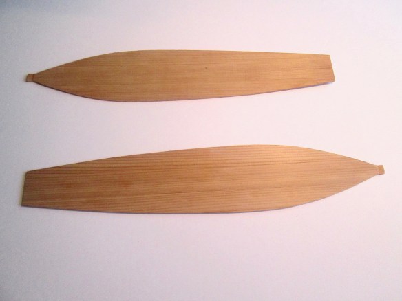 The stem, or miyoshi, was next. This was a more challenging shape. Its cross section is trapezoidal and it’s thicker at the base, tapering to a smaller cross section at it’s tip. This is one of the hinoki parts.