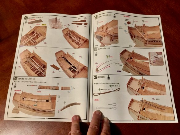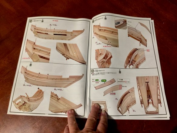 I’ve only browsed through the instructions, but the kit bears similarities to the more detailed Higaki Kaisen kit. This kit builds a slightly bigger model, by about 1″, and many laser-cut parts have been created to make construction much easier. Unlike the Higaki Kaisen, this kitt doesn’t detail any of the interior, but it also cuts a lot of the total construction time.