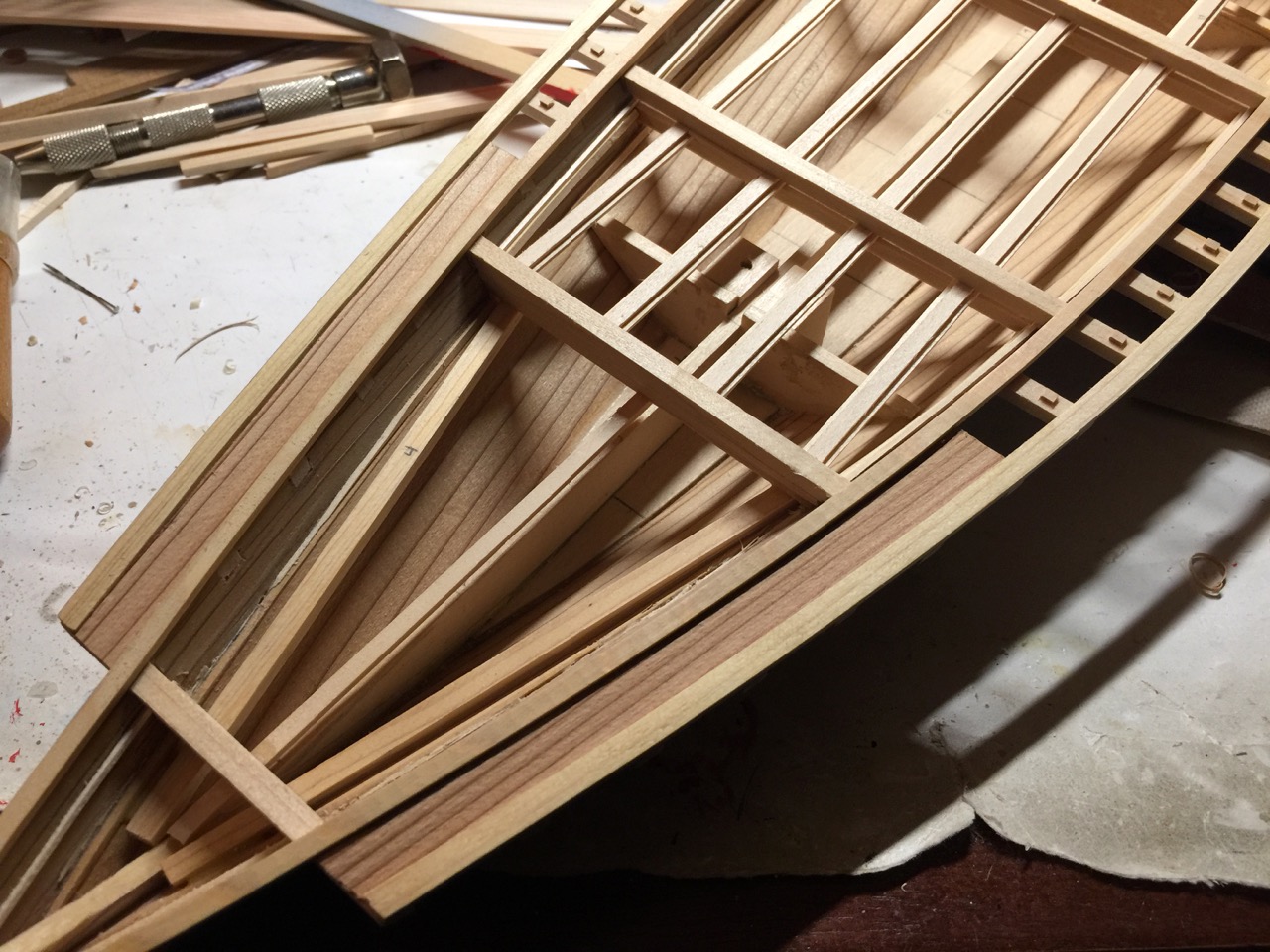 I also shaped and added walkway boards, which are described in the Paris text, but not shown on the plans.