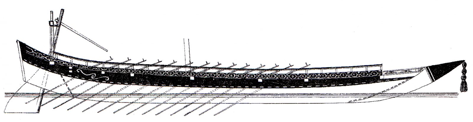 These boards are on either side of the section of the main deck which sits lower than the rest and is probably where the VIPs would sit. I am still going to be deciding what kind of structure to erect over this section of the deck. Paris describes something referred to as a “flying hut”, which I presume refers to structure that is covered by an awning. That’s something that seems very likely on a vessel of this type.