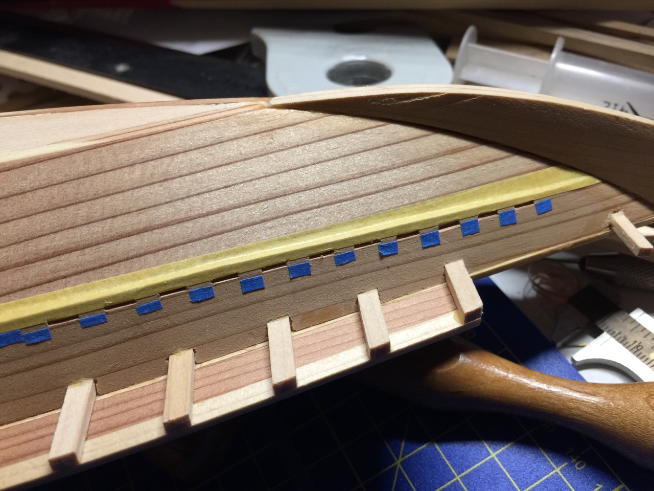 In any case, I don’t know if this is the final size of these mortises. On the real kobaya, these mortises were covered with metal plates. On most vessels, these would be copper. But for a gozabune, they appear a bright golden color – at least on models.