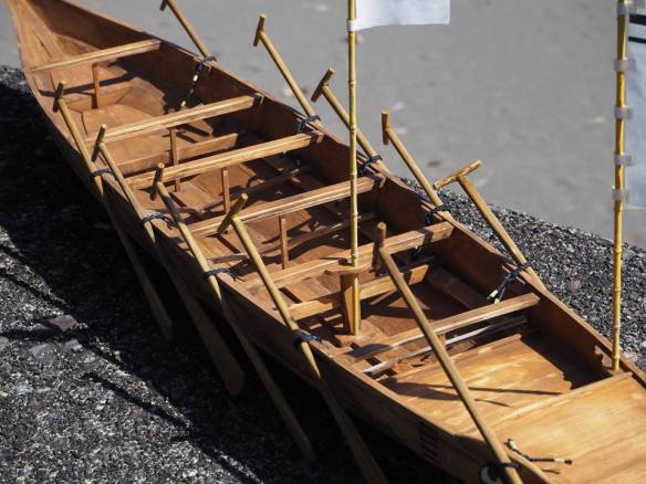 Ohata-san caught my attention on Facebook when he built a beautiful large scale model of a traditional Japanese fishing boat in 1/10 scale. But, his latest model is one of a well known wasen type found on the Kumano river. The boat is used in an annual festival race of the Kumano Hayatama Shrine’s Mifune Festival (御船祭). During this festival fast-boats are involved in a ritual race, while a boat carrying a Mikoshi, or portable shrine, is towed upriver.