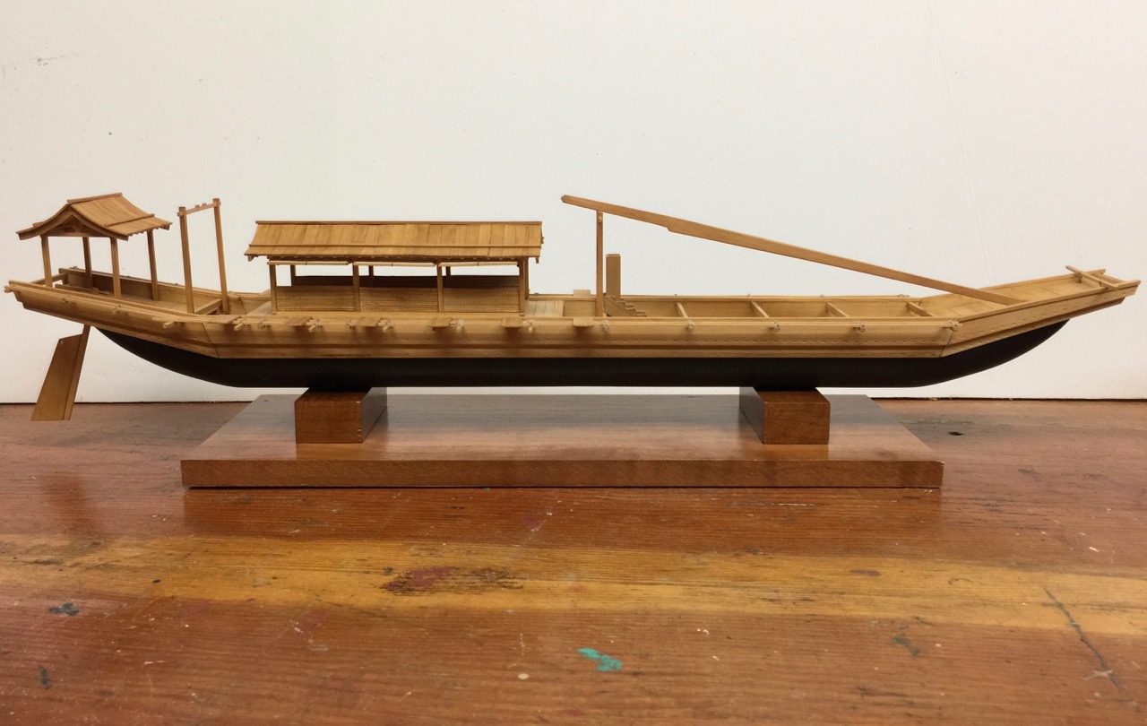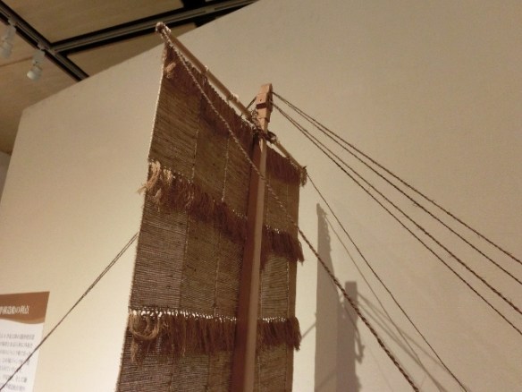 I’ve also been testing out a way to make the large square sail for it. It’s a little different from other sails because sails weren’t made from cloth at that time in Japan. Instead, they were made from straw mat. They were heavy and bulky and you certainly didn’t want to get them wet. I’ve been looking at how these have been modeled on museum models and one large scale 1/10-scale model that someone sent me photos of.