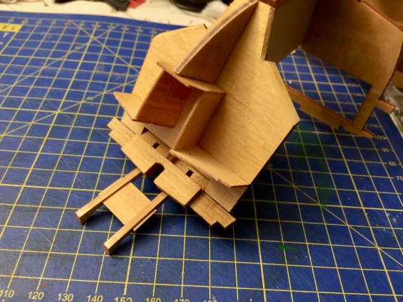 So far, the Kitamaebune kit differs from the Higaki Kaisen kit in that it is built with an internal framework, similar to that of most wooden model ship kits. The Higaki Kaisen kit was made to mimic the structure of the actual vessel, which had no frames or keel in the western sense.