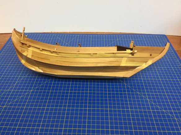 Now, this side plank that’s been truncated is all just one laser-cut piece. Were I to do this kit again, I think I would make whole new pieces that include the tip. For this model, I basically added the tips, but there’s a clear seam where the pieces come together, and it was hard to fit them after the fact.