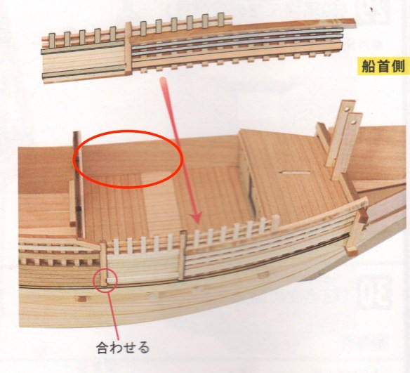 Note the strip of wood that spans the top of the inner bulwarks. I’ll have to scribe the lines of the gate in it, but I don’t even know if the real ship would have had this piece crossing the gate itself. It doesn’t on the Higaki-kaisen kit, and I don’t think it does on the one Kitamae-bune that I visited in Japan.