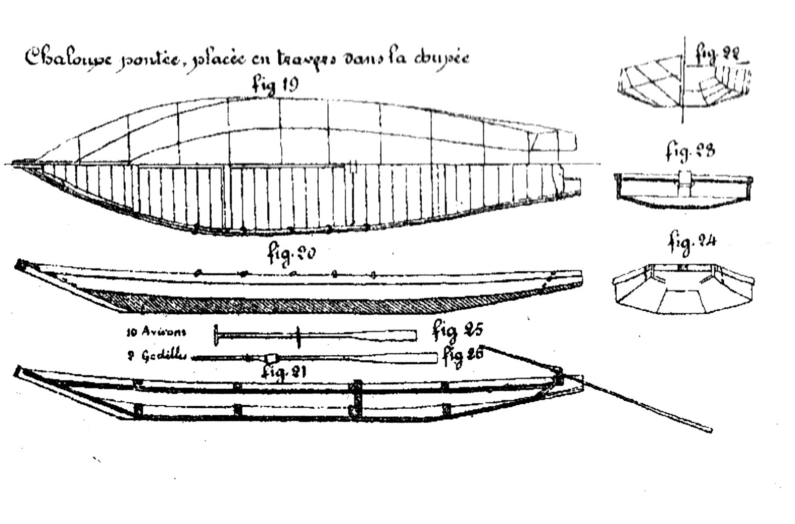 Also, if you look at the near side of the boat, particularly the bottom, it doesn’t appear to show any inward curvature. This threw me initially, as this is, again, pretty unusual. It’s not impossible, as the hozugawa boat I built doesn’t have any inward curvature at the stern either. But, looking more closely, at the far side, you can clearly detect inward curvature at the stern. The lack of curvature had bothered some people, so I’m glad I could spot some in the image to justify it on my drawings.The downward pitch of the small decks at the bow and stern were curious but I’ve seen this before, and Douglas Brooks confirmed it is a common feature on many traditional Japanese boats. The Tenmasen model that his teacher built and gave him shows this same feature, though I have not been able to ascertain if the stern deck pitches down, or if it only looks that way, as the hull shape rises at that end.