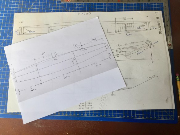 A more fundamental example is that while I do get many measurements, I don’t have any model plans to work with, so I have to make my own drawings and templates to use for cutting the parts I will need. This is pretty much par for the course when dealing with traditional Japanese boats, as they were not built from full plans, so few plans exist.