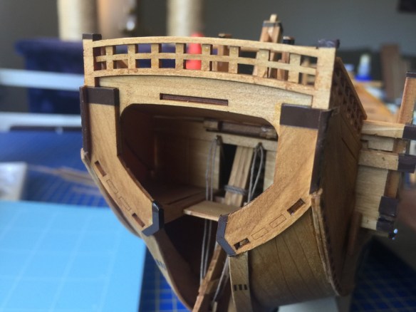Still bigger on my kitamaebune model, but I’m satisfied with it. I have noted the rope that runs around the sagari on both reconstructions. That’s something I want to add.