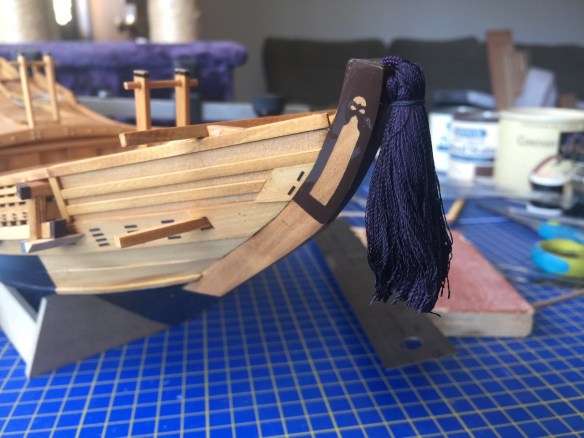 So, the next stage is to finish up the small details. I’m almost done with the application of vinyl details. Then, I’ll proceed with adding some little things to finish up the hull before I move on to detailing the sail and maybe adding a light mast at the bow.