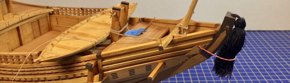 I’m now in the final stages of the building of Woody Joe’s Kitamaebune model kit. I’m working on the sails and rigging and dealing with a few small remaining details.