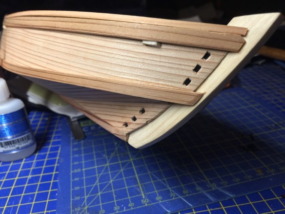 Unfortunately, I don’t have any photos of the simulated plugs in the hull at this stage. I actually did that after I added the nails.