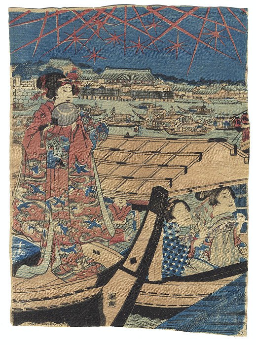 I have been told by Douglas Brooks that these angled decks allow water to collect at the low ends, where small drain holes have been cut into the hull. This might suggest that this boat could have been used on Edo Bay, where the waters were rougher than on the canals of the city.