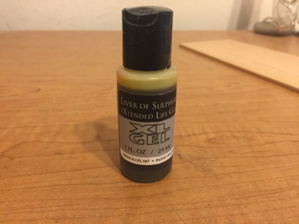 Liver of Sulphur gel. It doesn’t smell very good. But, it seems to get the job done.