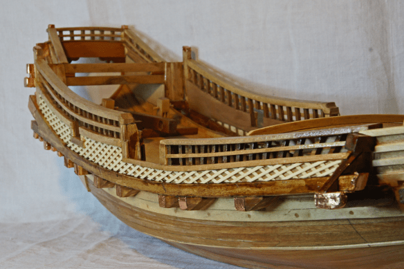 The construction of the model is detailed on the modeler’s website here: http://www.googlehupf.at/shipwright/?page_id=276