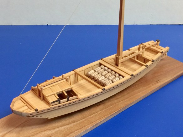 Tonegawa Takasebune – Like the Kitamaebune model, this one is mostly awaiting the completion of the rigging. The sail in this case is done, but just needs to be rigged. That’s required me to add a few details to the model for lines to tie off to. But, that’s already done now, and I’m mostly dealing with cargo now. It’s amazing how much cargo it takes to fill up one of these boats.