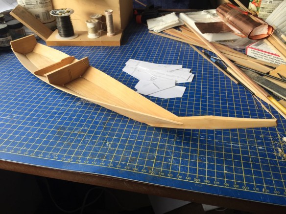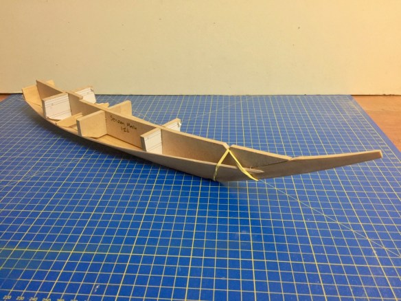 I now have the basic hull of the Senzanmaru. I must be getting really accustomed to building these models now, as this really came together shortly after I started putting the first hull pieces together.