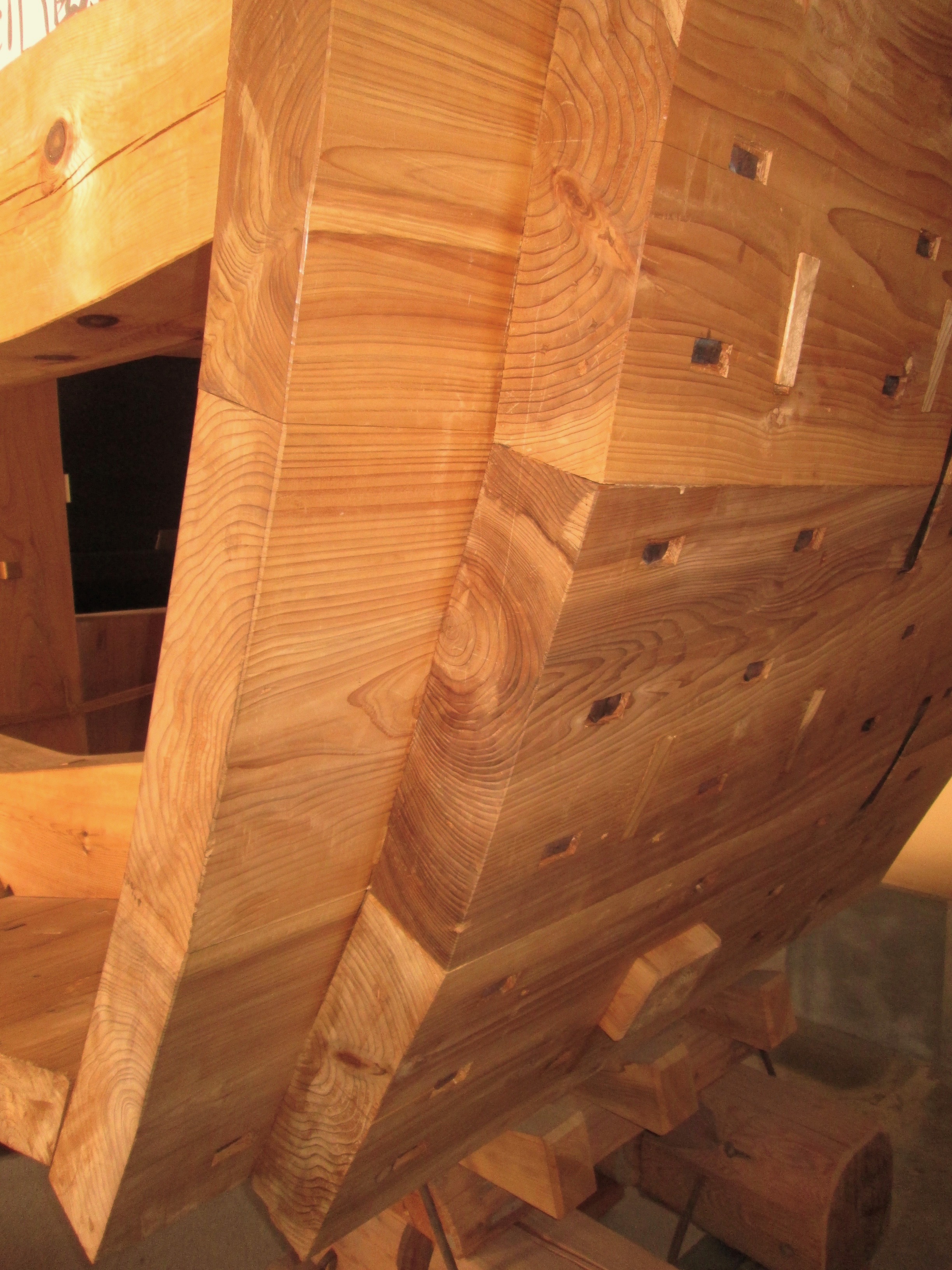 At the Hakusanmaru museum, there’s a representation of the cross section of the hull which tells us a lot more about how the planks are fastened together, and the general scale of the wood that forms the main structure of the ship.