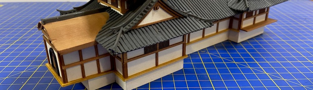 It’s time to finish the Atakebune’s castle structure. Basically, what’s left is to add the pieces that fit under the eaves of the roofs and also to install some edging pieces and then some final decorative details to the rooftops.