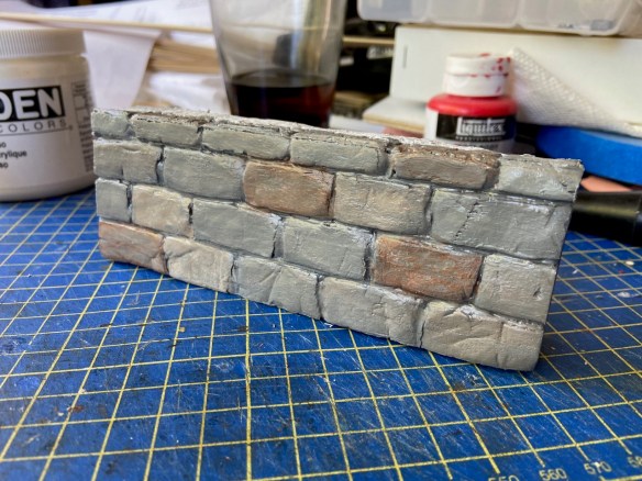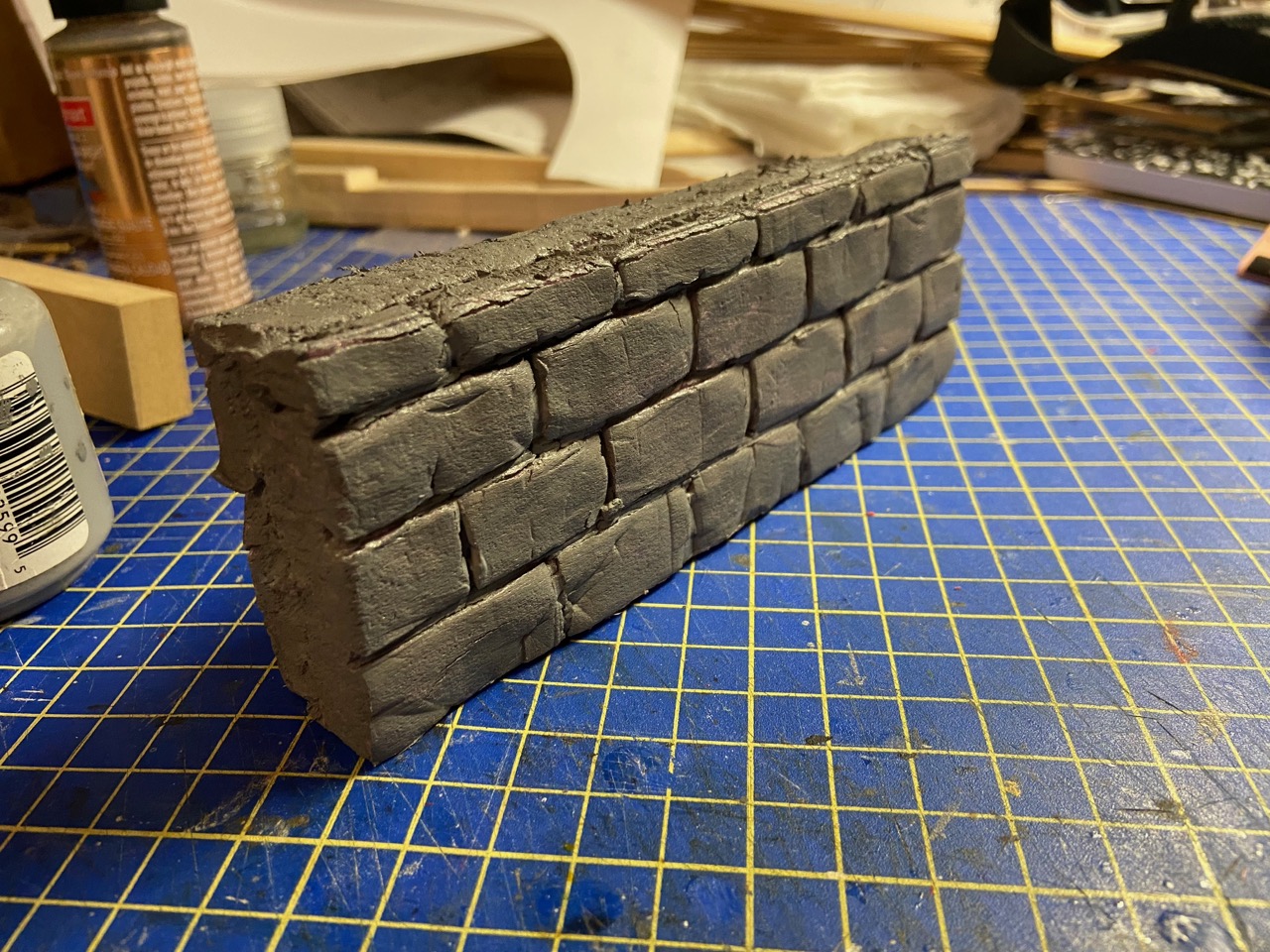 Finally, I had this idea in my head for making something that might look more correct. So, cut a test piece of wall section, and it seemed to look okay. I decided to take a chance and cut the real wall piece I’m using for the diorama.