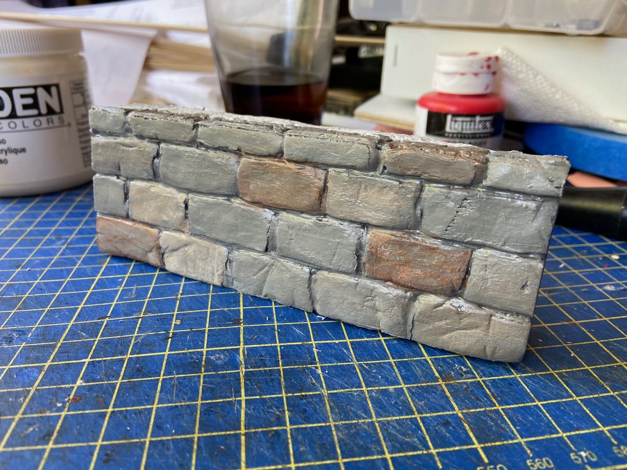 Meanwhile, I didn’t even have any experience in making a wall for a diorama, so I went on the Internet to look at different ways that people having simulated stone walls for dioramas, some very simple, some very complicated.
