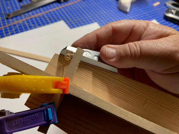 This strip was cut 6mm wide and glued and clamped into place, with the shiki clamped to the building frame.