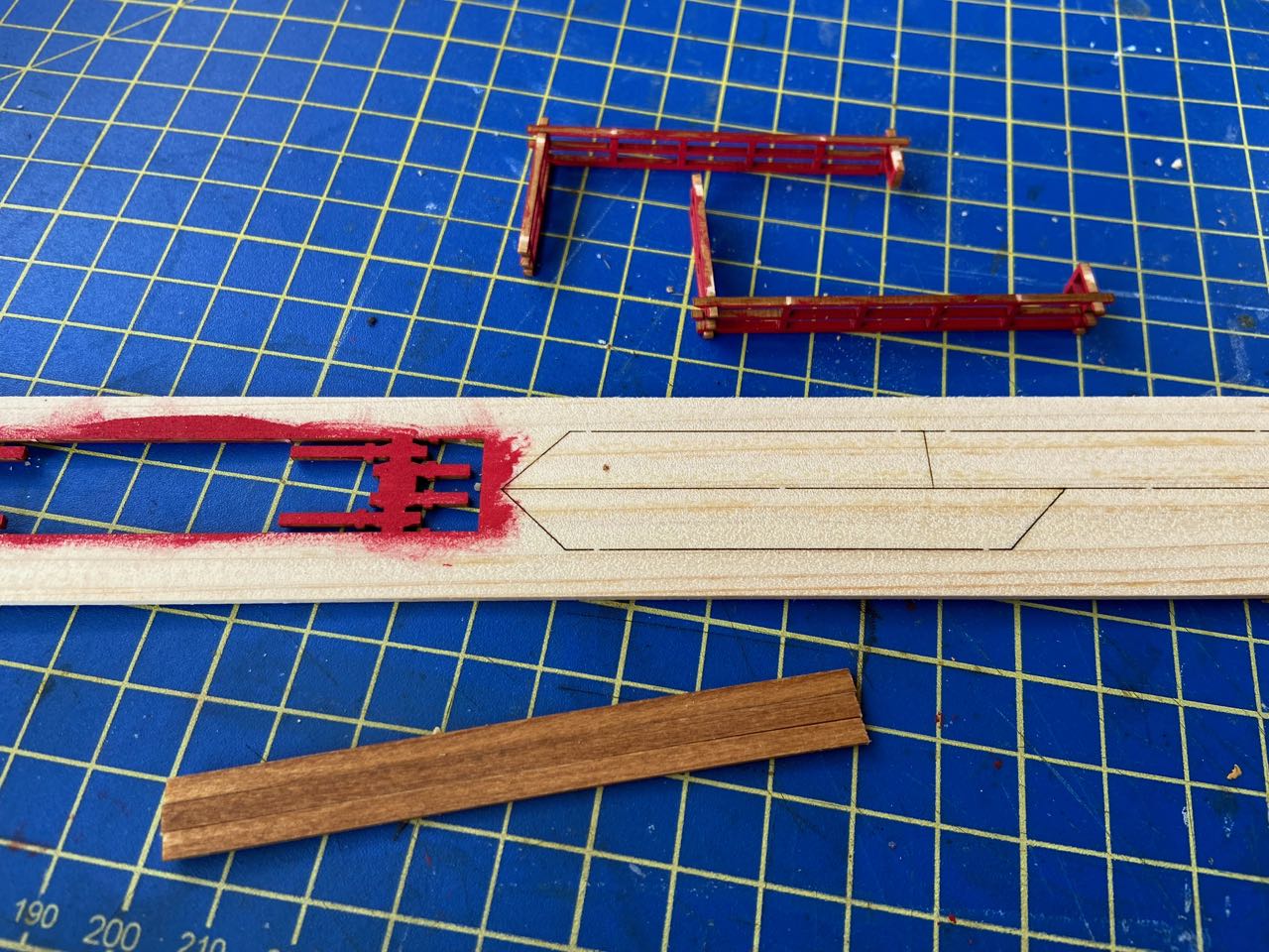 It was nice to see how this railing will add a splash of color to the final model, pretty much the only parts that aren’t going to be natural wood color, or painted gray or white.