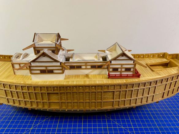 One of the features of this particular Atakebune that make it so interesting is the castle structure. Most Atakebune were simpler and just had nothing more than a single roofed house for the commander to oversee the battle. But, on this ship, the castle is very prominent. On the model, it makes for a nice project in itself.