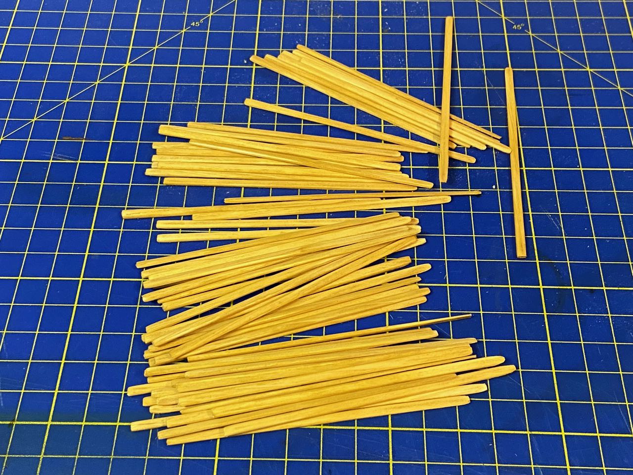 After some time away to work on the Oguraike boat and to get some traditional western ship modeling done for the newly restarting ship model meetings here in the San Francisco Bay Area, finally got back to finishing the sanding the sculling oars on my Atakebune model. I guess the model only needs 66 of them, but I’m sure I counted 72 in the kit. Maybe there are spares.
