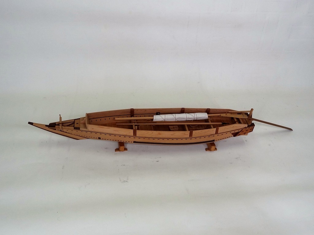 Last weekend, I had a number of models on display at the Good Sam Showcase of Miniatures, which consisted mostly of my wasen models. This was the first time I’d had any of my Japanese watercraft models on display since January, and it seems to have spurred me to get back to work on some wasen model projects. While I have the two Woody Joe kits to finish up, those being the Kitamaebune and Atakebune kits, I also have two scratch models I stated long ago, the whaleboat-style Senzanmaru, and the small Nitaribune based on the late Fujiwara-san’s boat Kawasemi.
