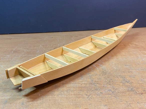Work is coming along on this model of the Edo period whaleboat-style craft Senzanmaru. Unfortunately, at this stage, a lot of work can be done with little apparent change in the model.