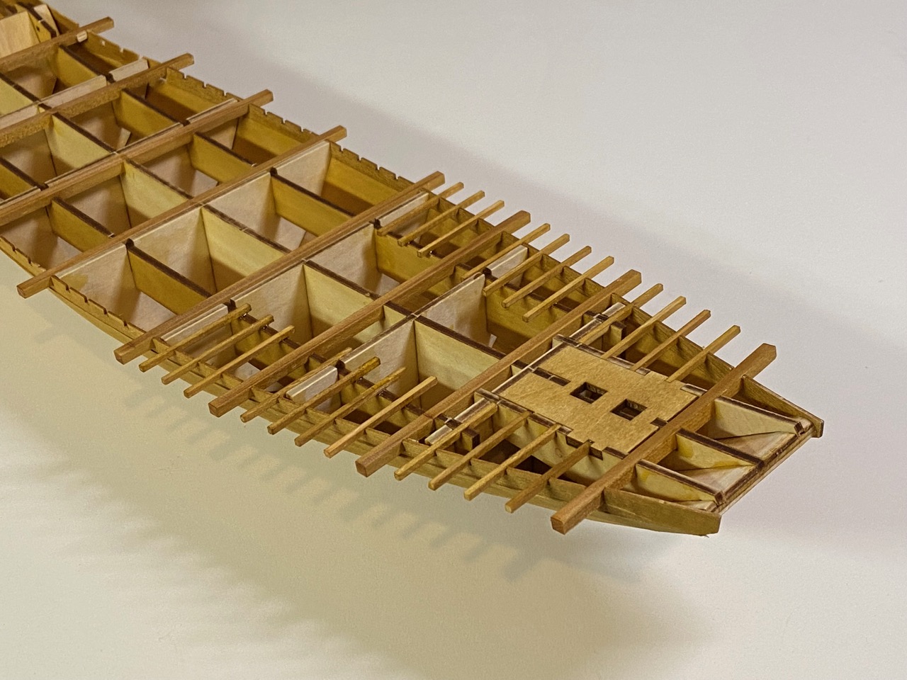 I was basically able to extend the internal structure of the stern by 15mm. This didn’t change the shape of the rear wall, just the side walls of the extension. So, I was able to use some of the parts I removed. However, I did have to make a new deck section, as the shape had changed due to the new dimensions.