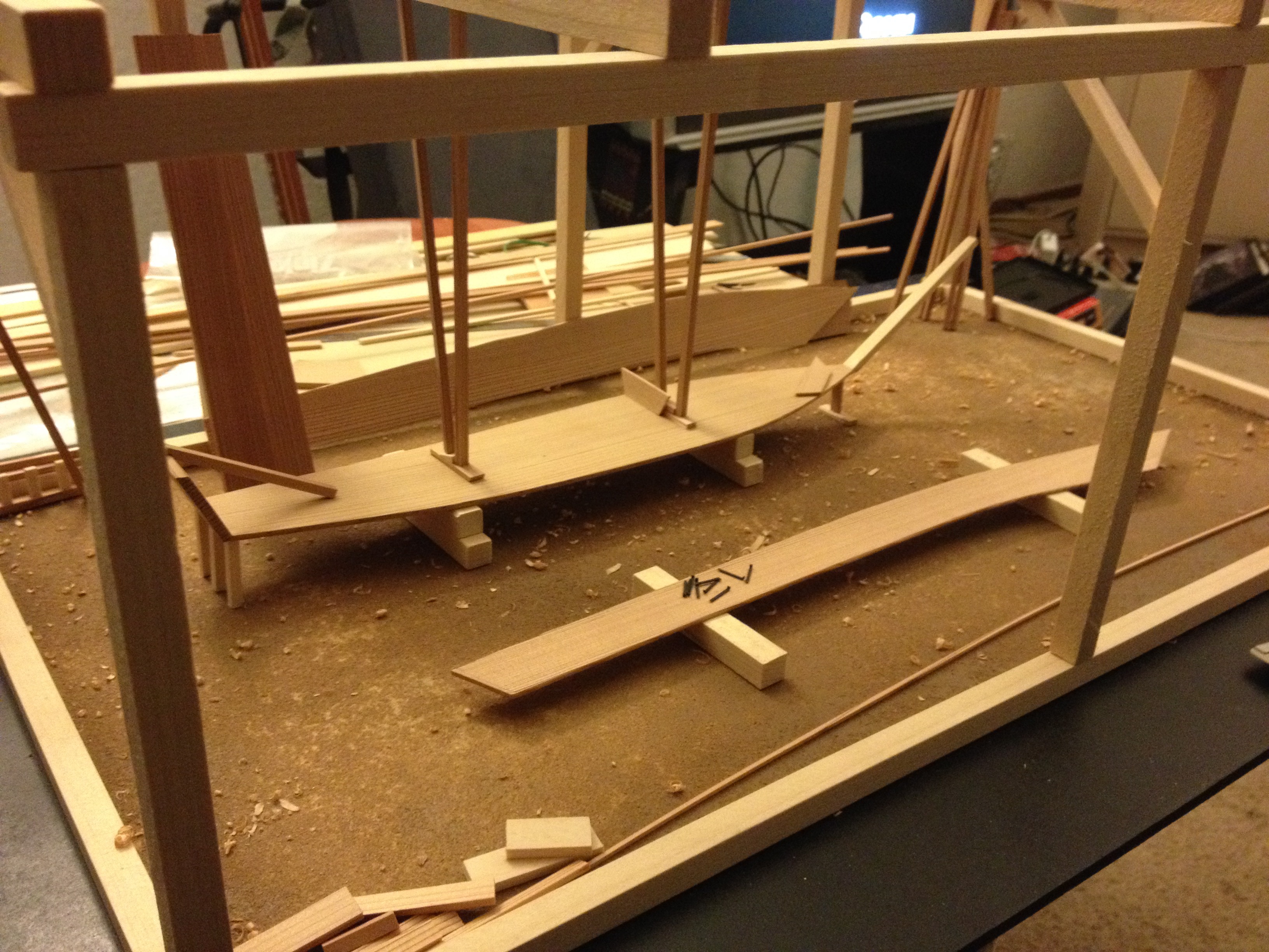 There are, of course, things to do differently next time, which I’ve already noted. The boat workshop display should probably be on some kind of a riser, like the other models, there is enough room to put up another large, hanging photo board, and there’s room for at least one more model, using the tall stand I introduced in this display. I suppose I could consider staggering them a little too.