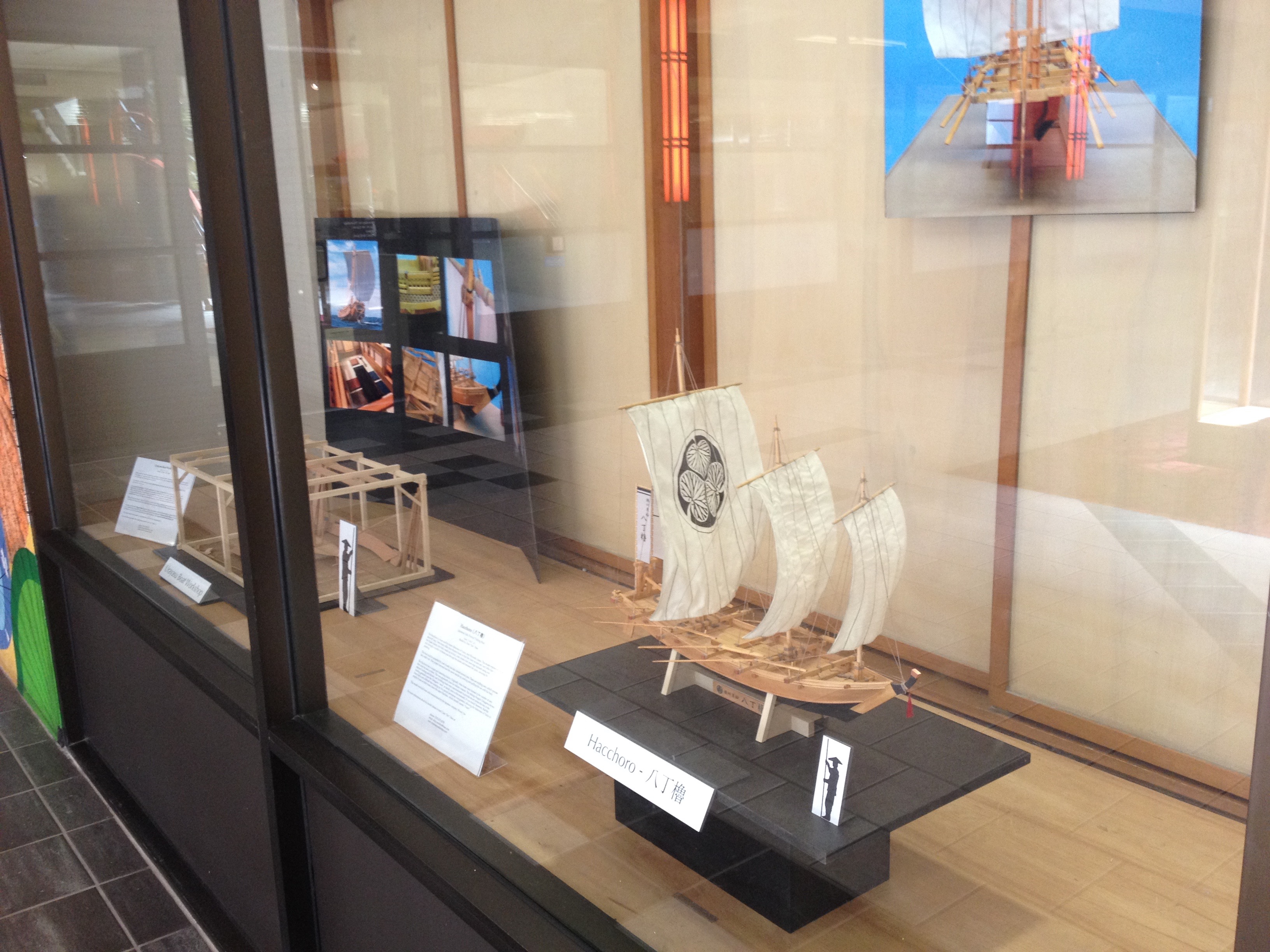Last week, I spent an entire afternoon in San Francisco setting up my latest display of models of Japanese traditional boats in the Japan Center Mall in San Francisco. This is the largest display I’ve done, which is now up to 5 models. It’s probably about as large as it will get as I can’t imagine that I can possibly cram any more into my car. And, given that I live about an hour’s drive outside the city (or two hours in bad traffic), I’m not likely going to be making two trips to set it up. But, the size is actually pretty good now.