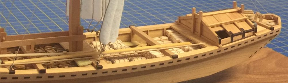 1/40 scale scratch built model based on drawings of a wooden kudari boat provided by Douglas Brooks.